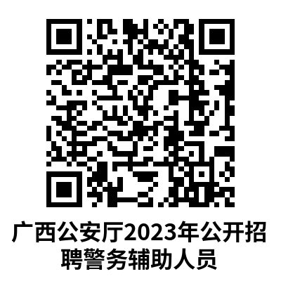 (二)报名方式:网上报名。登录广西人事考试网(www.gxpta.com.cn)、广西壮族自治区公安厅网站(http://gat.gxzf.gov.cn/)、广西壮族自治区公安厅微信公众号点击链接或者扫描公告二维码进入“2023年广西壮族自治区公安厅警务辅助人员招聘网上报名系统”(https://gx.bmpta.com/gongantingfj/index.aspx),选择报考岗位、填写个人相关信息资料,上传报名材料完成报名。