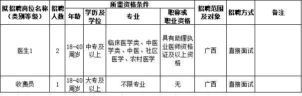 报名需提交材料:携带招聘报名表(附件)、身份证、毕业证、相关专业技术资格证书原件及复印件,到武宣县禄新镇中心卫生院综合楼五楼院办公室(武宣县禄新镇南街36号)进行资格审查。