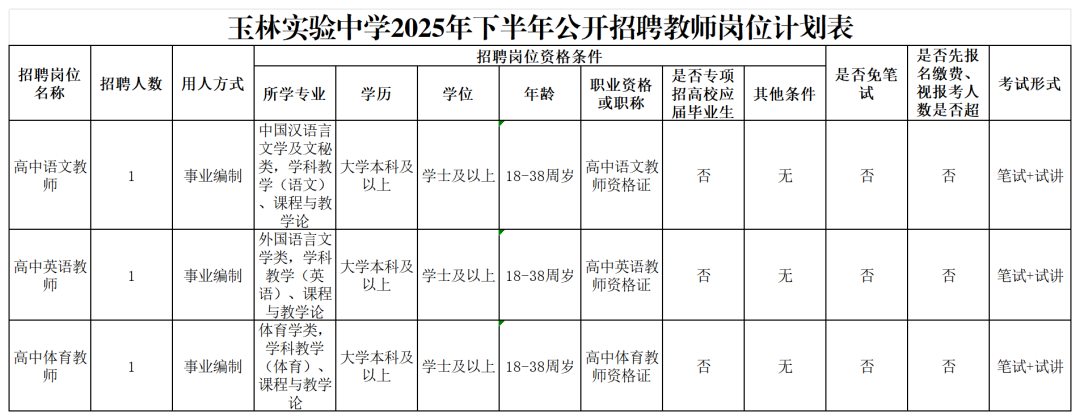 具体招聘信息请浏览玉林市人社局网站相关公告,以《玉林市2025年下半年公开招聘中小学幼儿园教师公告》为准。