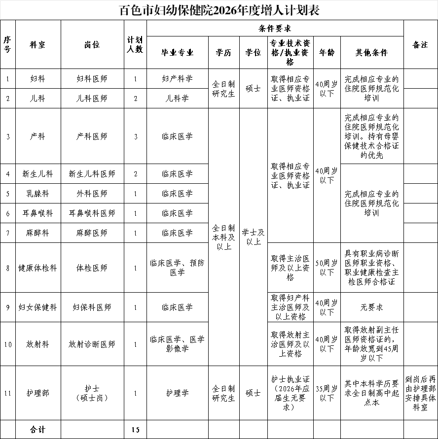 咨询电话:百色市妇幼保健院人事科0776-2842398