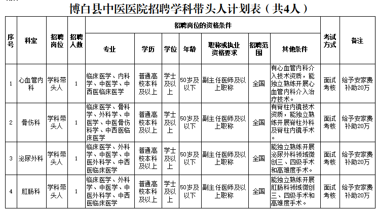 根据医院学科建设发展需要,现面向社会公开招聘部分学科带头人,热诚欢迎优秀人才加盟我院!具体岗位及条件如下: