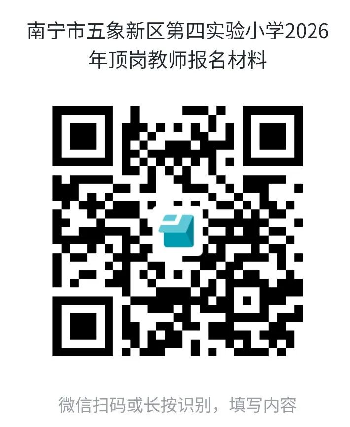 报名时间:即日起报名材料:1.个人身份证2.毕业证书、学位证书3.教师资格证书4.普通话水平测试等级证书5.个人工作能力、教学业绩相关佐证材料。(以上材料网上投档请发送扫描件,面试时审核原件)报名方法:⭐扫描下方二维码填写并上传相关证明材料。