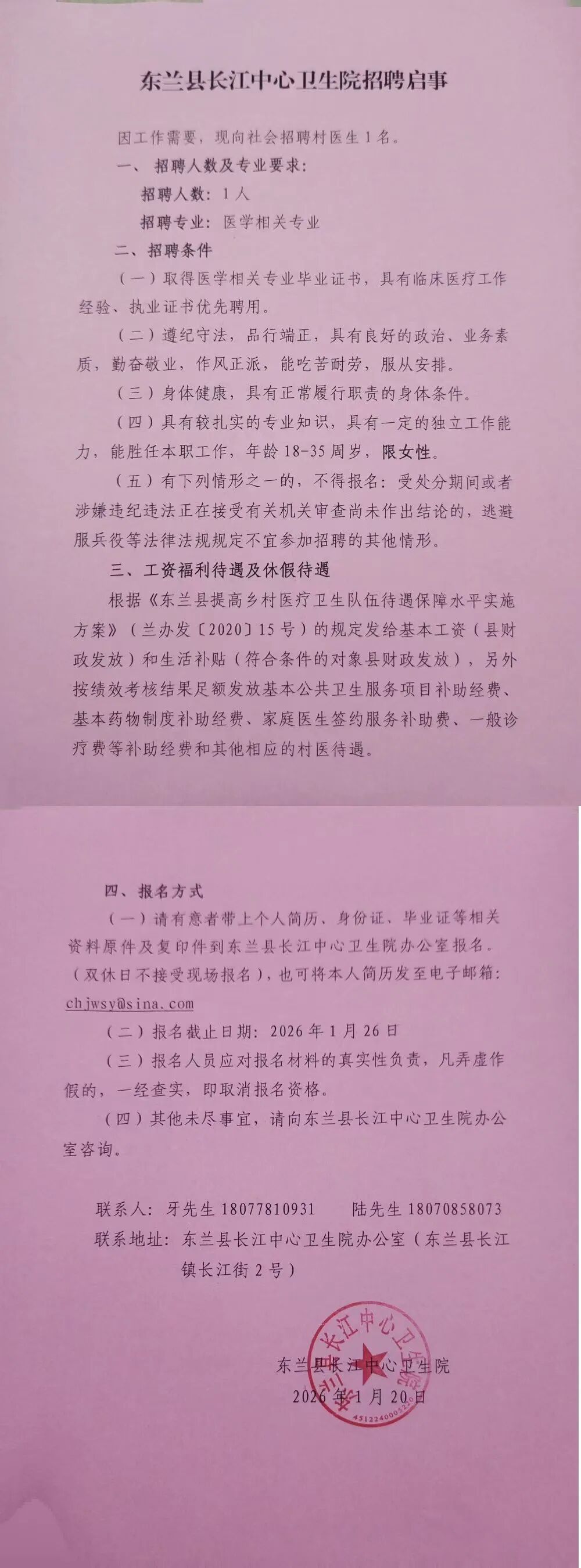 招录地区:东兰县