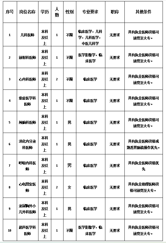 (三)面试时间及所需材料:资格审查通过后,即组织面试,时间以正式通知为准,不入围者,不另行通知。面试时需携带身份证、毕业证、执业证、资格证等原件进行核验。