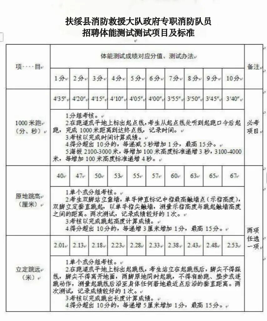 注意事项:体能测试有两项及两项以上不得分的视为不合格(标准参照附件)。未按时参加或因身体原因无法测试者,视为自动放弃。