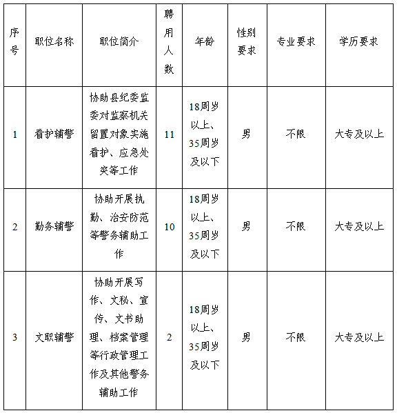 注:职位初定,需服从县局统一调配,否则不予聘用。