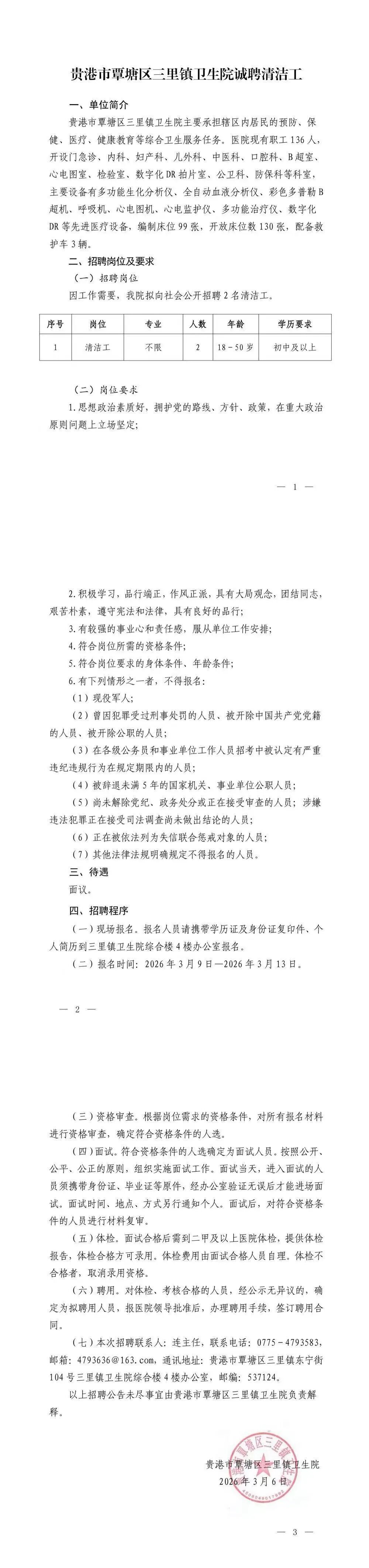 招录地区:覃塘区