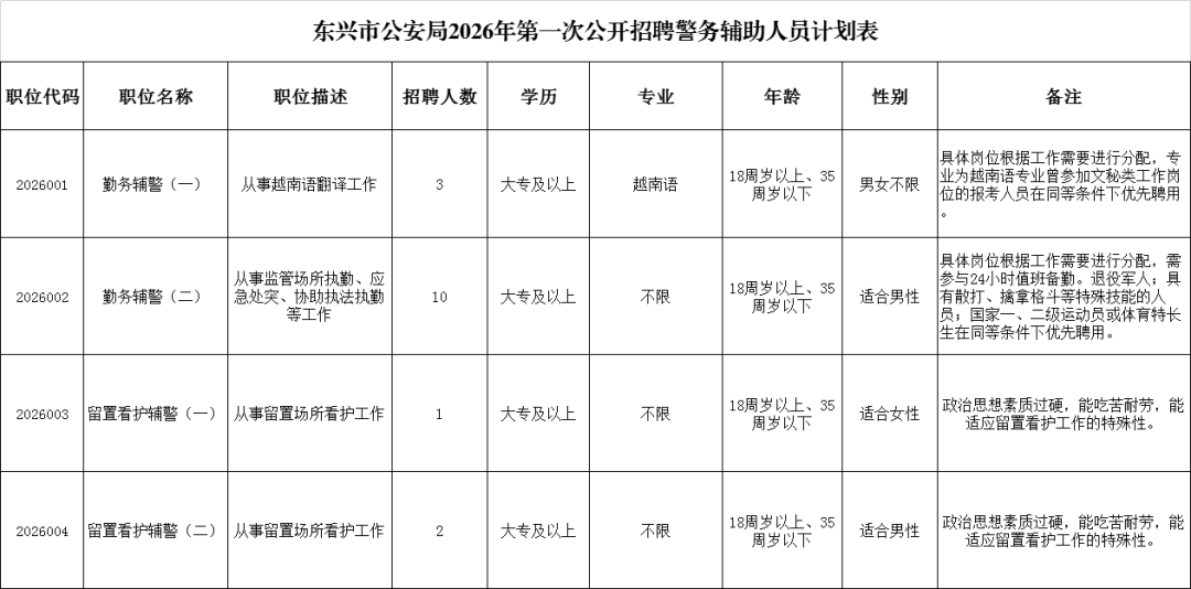 附件1:东兴市公安局2026年第一次公开招聘警务辅助人员计划表.xls