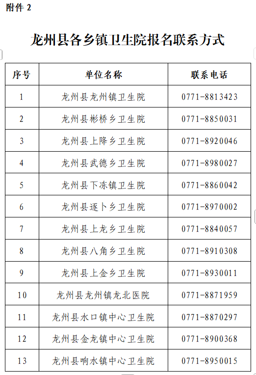 2.龙州县各乡镇卫生院报名联系方式