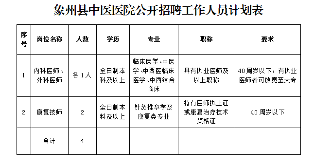 (二)报名需提交材料:个人简历、身份证、毕业证、资格证、执业证、职称证等证件的原件及复印件,以及《象州县中医医院公开招聘工作人员报名表》(详见附件)。
