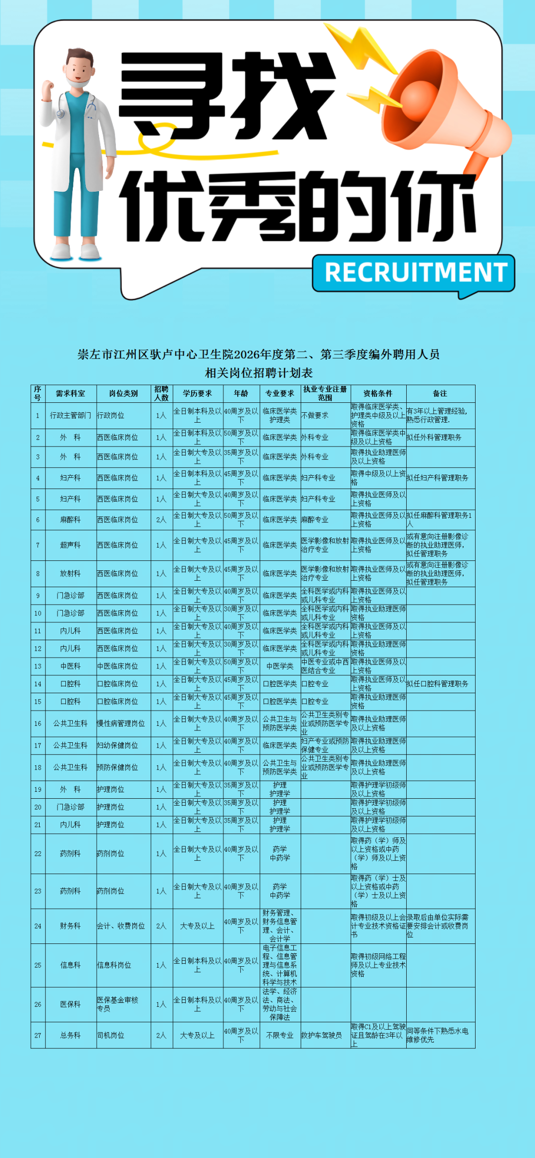 6.男女不限,年龄按各岗位要求详见岗位计划表。